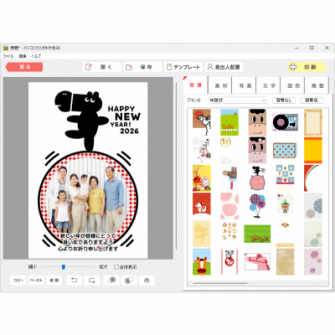 『パソコンでハガキ作成+宛名印刷26』は、直感的なマウス操作でハガキ作成から宛名印刷までできるパソコンソフトです。2026年の干支「午(うま)」の素材を収録しました。