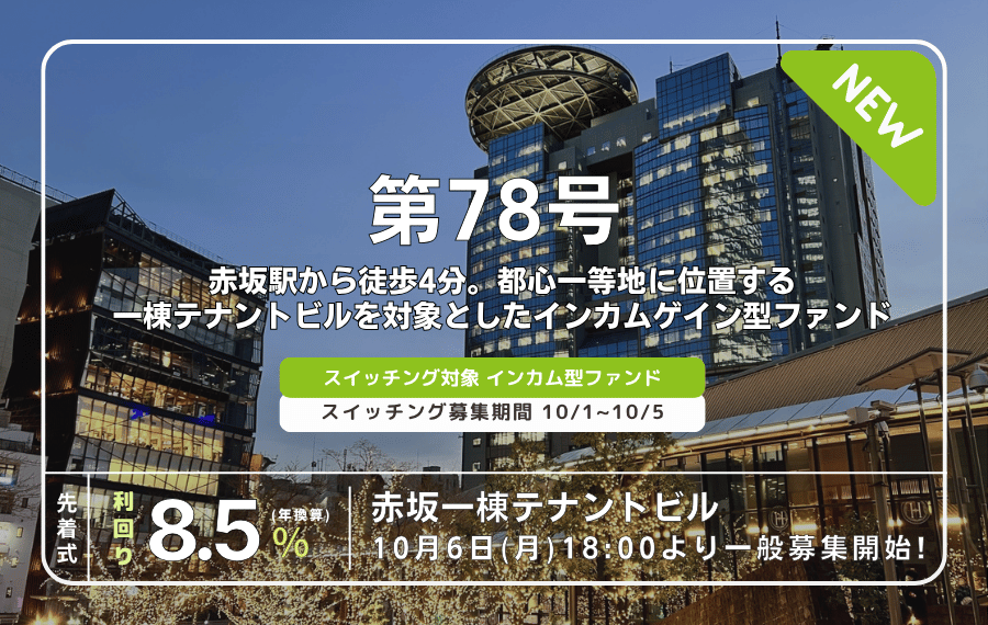 なお、第78号ファンドは、一部対象不動産を同一とする第64号ファンドの後継ファンドです。第64号ファンドは契約通り2025年10月31日に運用終了予定です。