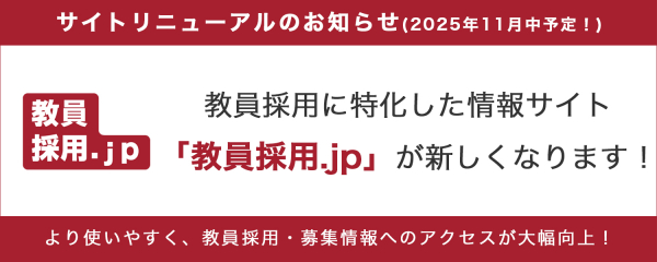 「教員採用.jp」は、今回のリニューアルを機に、教員採用のプラットフォームとして、より一層の信頼性向上とサービス拡充に努めてまいります。教員を目指す方々にとって、最適な情報と機会を提供するサイトであり続けるため、今後も継続的に機能改善を行っていく予定です。