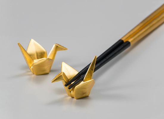 【箔一】吉祥 金の鶴箸置き(2個)~金箔(金沢箔)の食器~人気の高級ノベルティ!