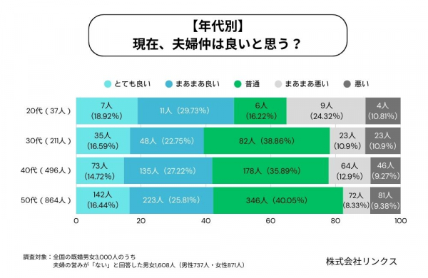 既婚者向けマッチングアプリ「既婚者クラブ」を運営する株式会社リンクス(東京都港区)は、全国の20歳~59歳の既婚男女3,000人を中心に「夫婦の営み」に関するアンケート調査を実施しました。