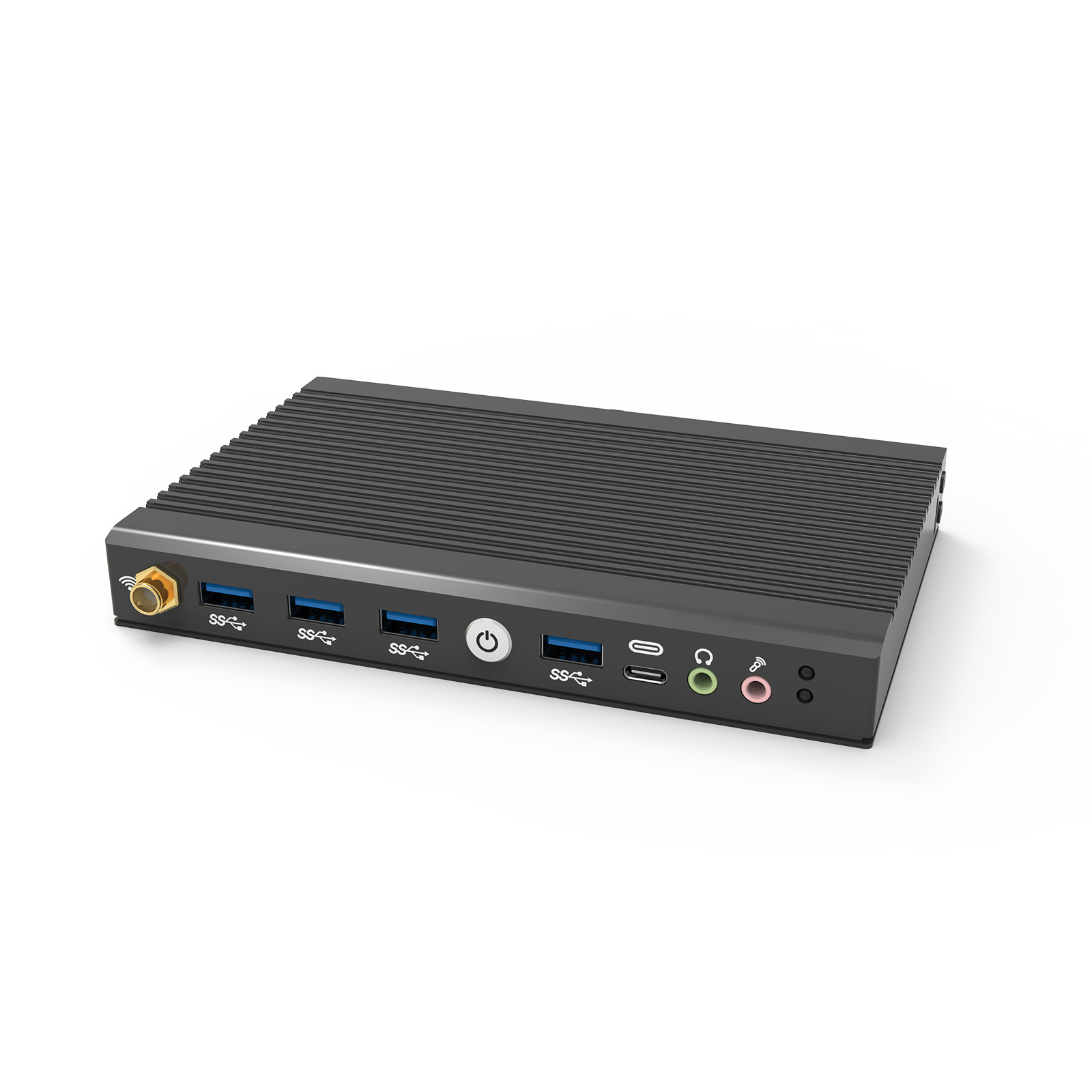 有線接続のLANポート2基に加えてUSB 3.2ポートを前後合わせて5基搭載し、レガシーデバイスとの接続に便利なCOMポート(RS232)も標準搭載しています。