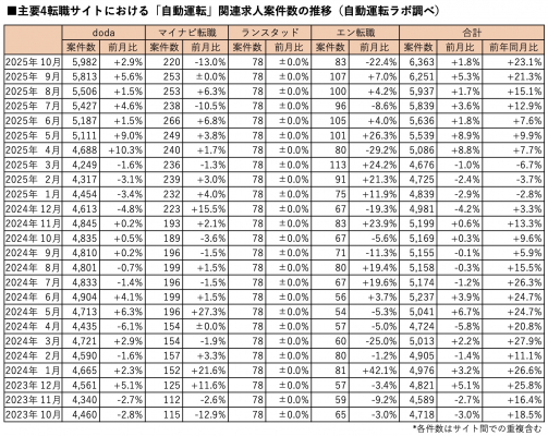 ●『自動運転ラボ』による定点求人案件数調査について