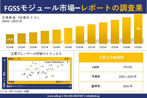 SDKI Analytics(本社:東京都渋谷区)は、このたび、2025年10月31に「FGSSモジュール市場調査レポート:2025-2035年の市場規模、シェア、傾向の予測」を発表しました。FGSSモジュールに関する市場調査レポートには、統計的及び分析的アプローチを使用した予測評価が含まれています。この調査レポートでは、一次及び二次調査方法を使用して分析された主要な業界洞察を通じて将来の傾向を理解できるようにすることで、主要な市場傾向を読者に説明しています。