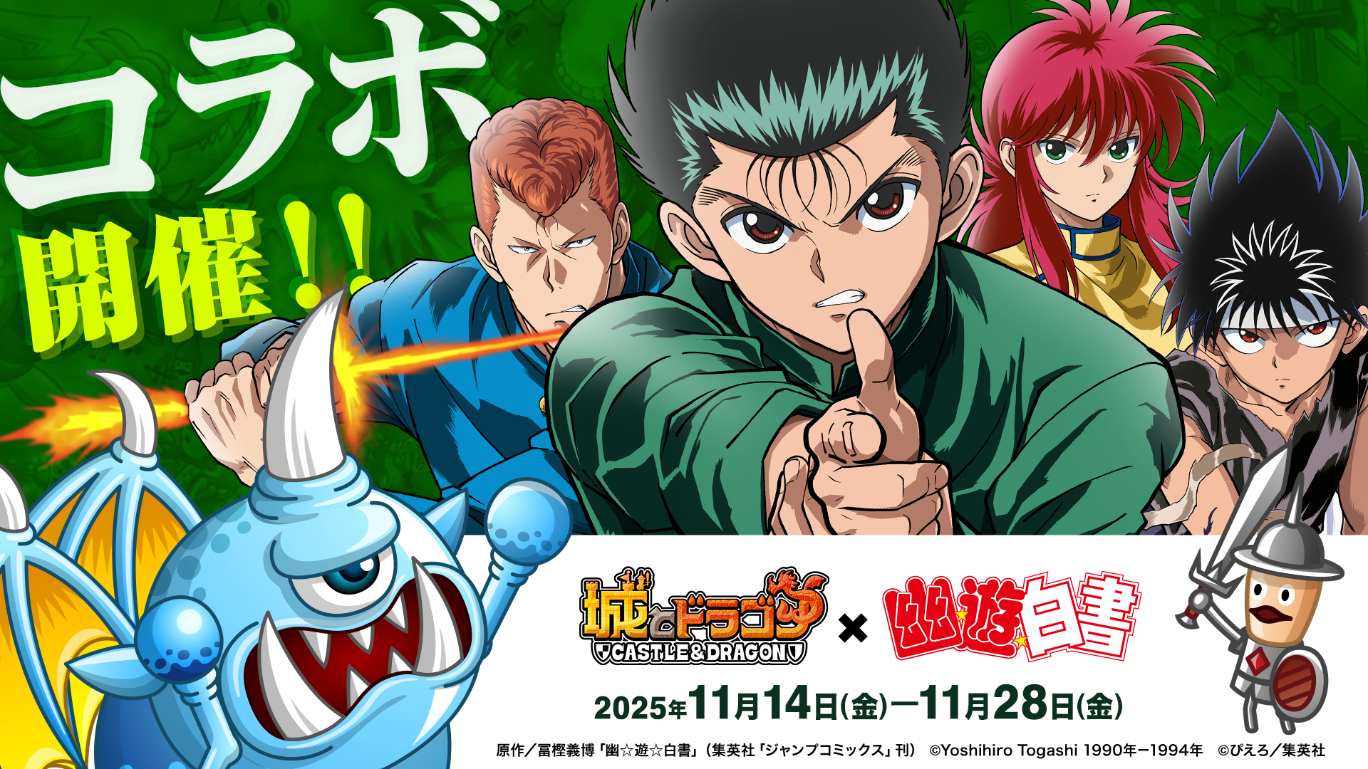 株式会社アソビズム(本社:東京都千代田区、代表取締役:大手智之)は、App Store・Google Playにて好評配信中の『城とドラゴン』で、TVアニメ『幽☆遊☆白書』との復刻コラボイベントを、2025年11月14日(金)より開催いたします。