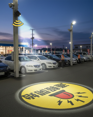従来のセンサーライトは明るく照らすのみだった効果に 「通報開始」「警察到着まで3分」「不審人物スキャン中」 と言った具体的な文字を投射することで、犯行を焦らせ盗難作業を遅らせる効果が期待できる。