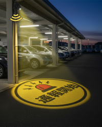 後に投影機の画像をさらに変更し、使う場所や、目的を変え、盗難抑止効果の高いフレーズ・ロゴを投射することが可能。