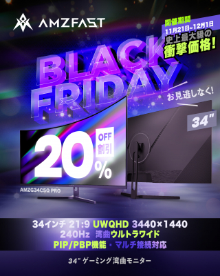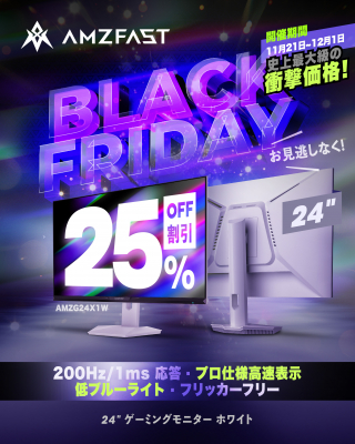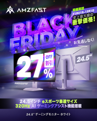 2025年11月21日 東京 - eスポーツ向けモニターブランドとして高い評価を得ているAMZFASTは、2025年11月21日から12月1日まで、日本国内にてブラックフライデーキャンペーンを実施いたします。期間中、当社のゲーミングモニター全ラインナップを対象に、最大31%OFFの特別価格にてご提供いたします。
