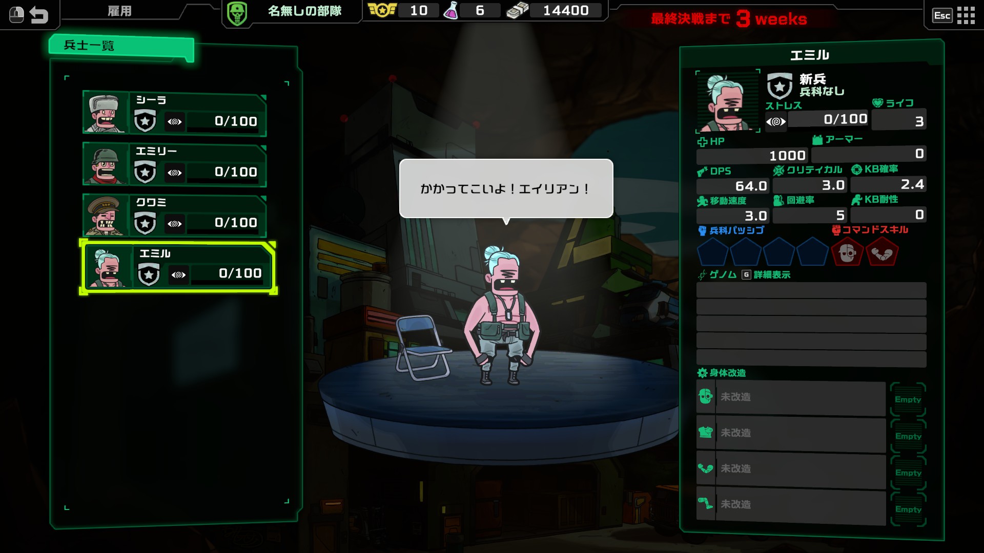 そのほか、兵士の「退役」「解剖」「葬式」といった独自システムも備えており、これらの判断が部隊運用に深みを与えます。