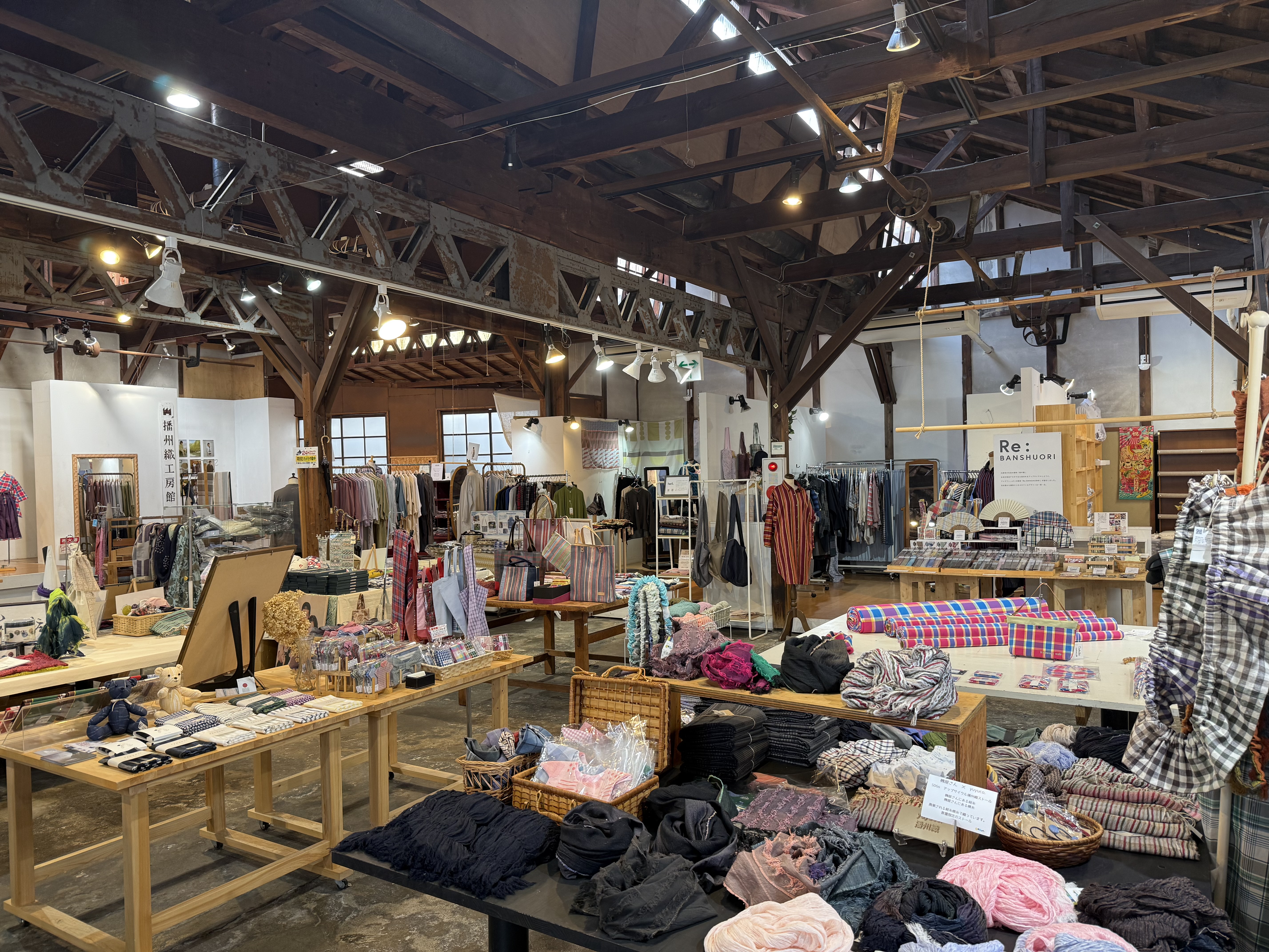 西脇市では、先染め綿織物として知られる「播州織」の文化に触れます。「播州織工房館」では、織物工場を活かしたアンテナショップで色彩豊かなアイテムをお買物し、地場産業の奥深さに触れます。