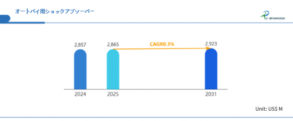 LP Information調査チームの最新レポートである「世界オートバイ用ショックアブソーバー市場の成長予測2025~2031」(https://www.lpinformation.jp/reports/18301/motorcycle-shock-absorber)によると、2025年から2031年の予測期間中のCAGRが0.3%で、2031年までにグローバルオートバイ用ショックアブソーバー市場規模は29.2億米ドルに達すると予測されている。
