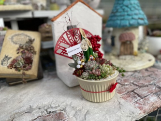 ・多肉植物を使った正月仕様の寄せ植え制作