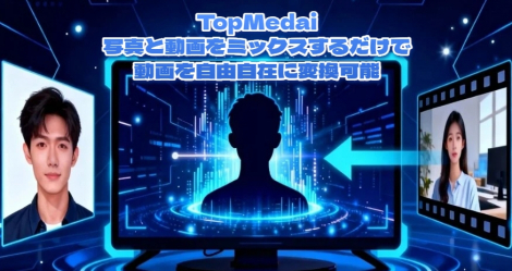 TopMediai の写真×動画変換は、静止画と動画をAIが解析・合成し、新たな動きを持つ映像として生成できるオンラインサービスです。写真の人物をそのままアニメーション化したり、人気ダンスを踊らせたり、動画内の人物と入れ替えたりと、多用途な動画制作が直感的な操作で実現します。