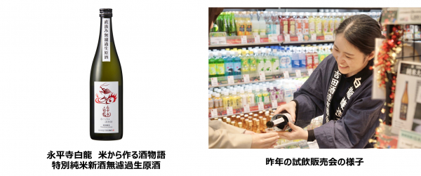 食料品専門店「北野エース」を運営する株式会社エース(東京本部:東京都江東区、関西本部:兵庫県尼崎市、 代表取締役 社長執行役員:油山 哲也)は、福井県永平寺町に酒蔵を構える吉田酒造とのコラボレーション企画「米から作る酒物語プロジェクト」を実施。2025年5月~12月にかけ、北野エースのスタッフ自らが田植え・酒造りを行う本プロジェクトによって完成した永平寺白龍「米から作る酒物語 特別純米新酒無濾過生原酒」が北野エース限定店舗にて12月10日(水)から順次発売となりました。