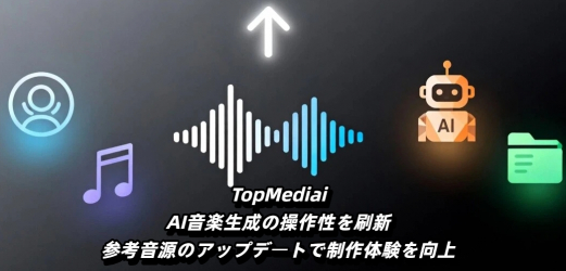 TopMediai ではこれまで、多くのクリエイターや動画制作者から「参考音源を使った生成をもっと細かくコントロールしたい」「過去に使った音源を再利用しやすくしてほしい」といった声が寄せられていました。
