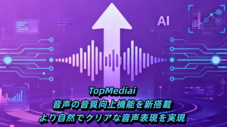 音質向上機能は、TopMediai の音声生成・編集機能と連携し、生成した音声の品質改善や既存音声の最適化に活用できます。今後もユーザーのフィードバックを反映し、さらなる精度向上やリアルタイム処理対応など、音声体験をより快適にする機能の拡張を進めてまいります。