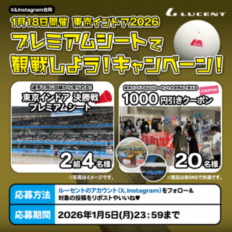 このたび大会の開催を記念して、プレミアムシートのペアチケットがもらえる『1月18日開催 東京インドア2026 プレミアムシートで観戦しよう!キャンペーン!』をルーセント公式Xならびに公式Instagramで開催いたしました。