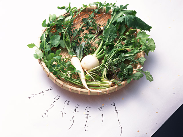 春の七草は早春にいち早く芽吹くことから邪気を払うとされ、一年の無病息災を願って七草粥を食べる習慣が生まれました。一年の最初の節句である1月7日の「人日の節句」(じんじつのせっく)は別名七草の節句と言われ、春の七草(セリ、ナズナ、ゴギョウ、ハコベラ、ホトケノザ、スズナ、スズシロ)を入れた七草粥を食べて、1年間の無病息災と長寿を願う日本の伝統行事です。