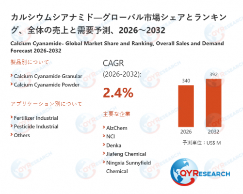 QYResearch株式会社(所在地:東京都中央区)は、最新の市場調査レポート「カルシウムシアナミド―グローバル市場シェアとランキング、全体の売上と需要予測、2026~2032」を発表しました。