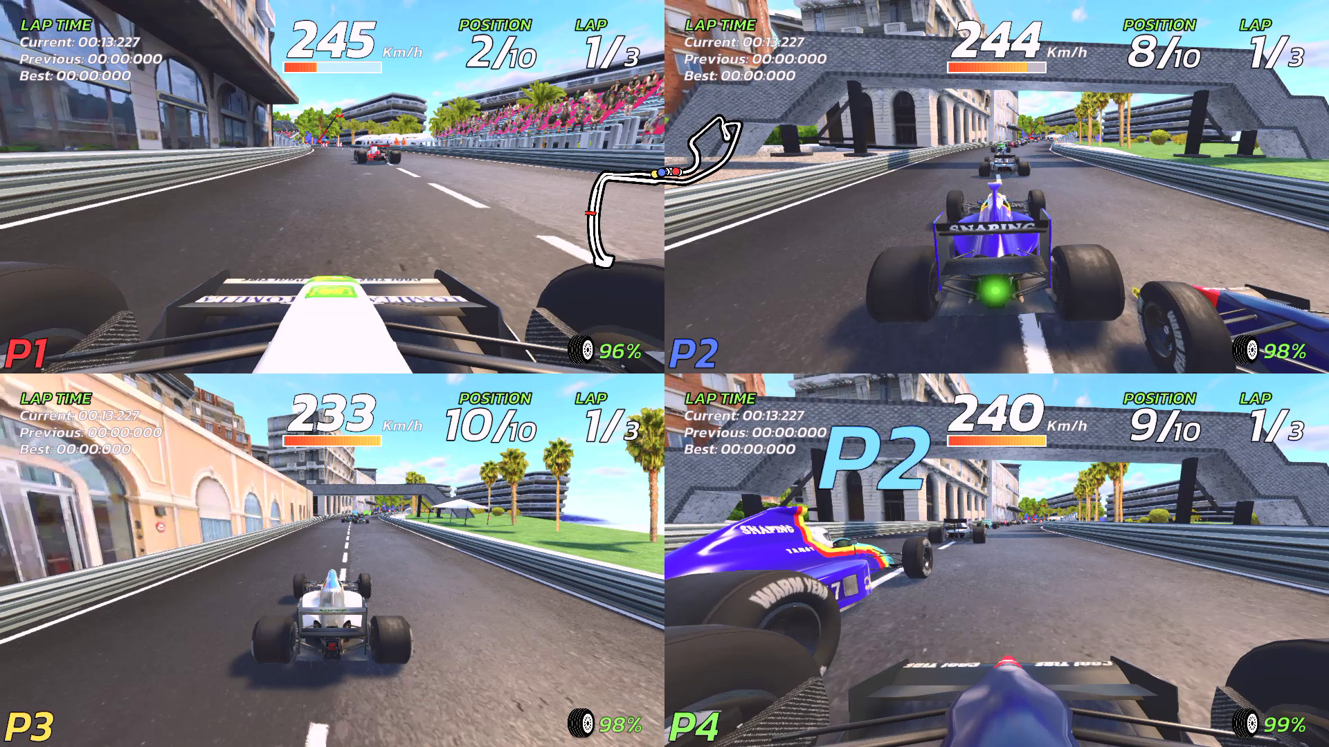 『4PGP』は、初心者から上級者まで楽しめるマルチプレイ対応アーケードレーシングゲームです。90年代のアーケードゲームの興奮と最新技術を融合し、どこでも、だれとでも白熱レースを楽しめます!