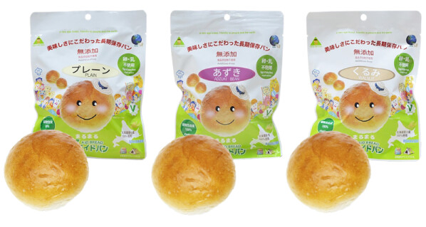 フレーバーはプレーン、あずき、くるみの3種類で、2026年2月より防災商社と全国のスーパー/コンビニ等にて新発売。