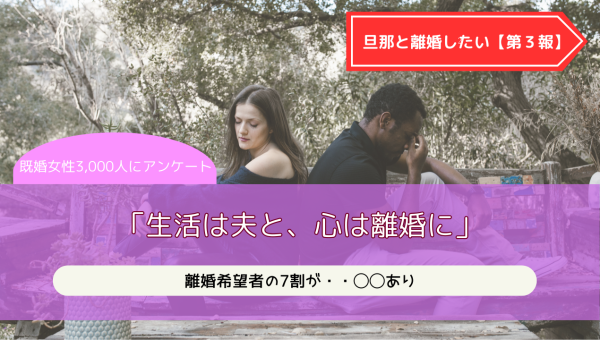 次回第4報では、離婚を希望している女性たちに「離婚に踏み切れない本当の理由」や「実際に離婚する予定があるのか」などを調査。