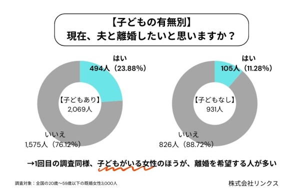 離婚を望む割合は、「子どもがいる妻」ほど高いという結果に。