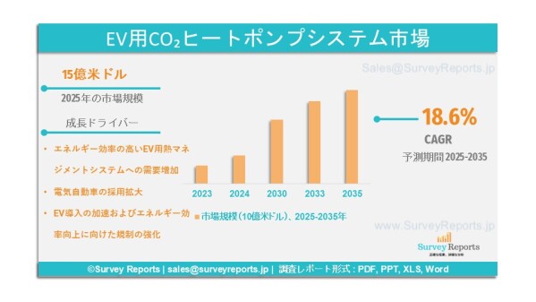 詳細レポートへのアクセスはこちら:https://www.surveyreports.jp/industry-analysis/ev-co2-heat-pump-systems-market/1038295