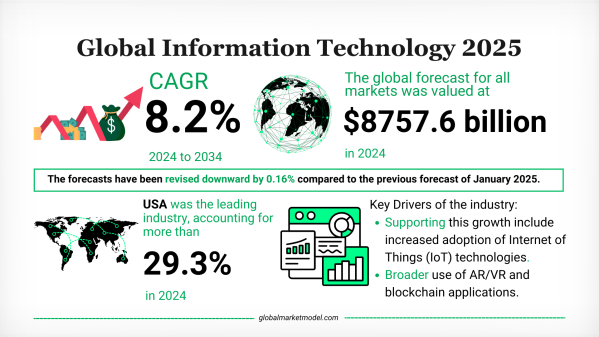二〇二四年、世界の情報技術市場は八兆七千五百七十六億ドルに達し、二〇二四年から二〇三四年にかけて年平均成長率八・二%で拡大すると見込まれています。この成長軌道は、先進国および新興国の双方において、デジタルサービス、自動化ツール、安全で拡張性の高い技術基盤に対する持続的な需要を反映しています。