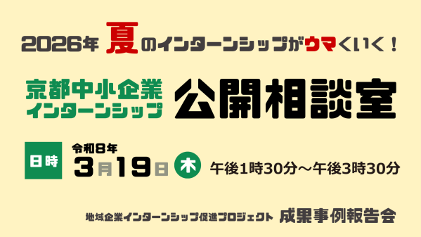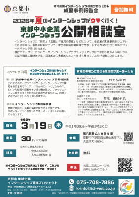 「京都中小企業 インターンシップ 公開相談室」(参加費無料)を開催します。