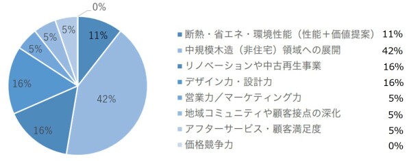 その理由として、「既存人員と設備で対応できる領域であれば+αとしていける」「戸建住宅は、今後も市場規模が減少する傾向にあると予想している」などが挙げられました。