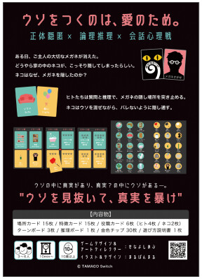 株式会社CUCURIは、オリジナルボードゲームブランド「TAMAGO Switch(タマゴスイッチ)」より、正体隠匿と論理推理を組み合わせた新作ボードゲーム『メガネネコネ』を発売いたします。