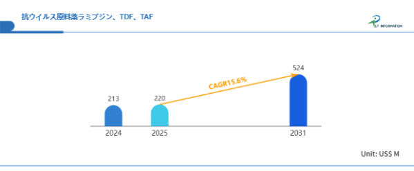 LP Information調査チームの最新レポート「世界抗ウイルス原料薬ラミブジン、TDF、TAF市場の成長予測2025~2031」(https://www.lpinformation.jp/reports/190444/antiviral-api-lamivudine--tdf-and-taf)によると、2025年から2031年の予測期間中のCAGRが15.6%で、2031年までにグローバル抗ウイルス原薬市場規模は5.24億米ドルに達すると予測されている。このデータは、HIV感染症およびB型肝炎のグローバルな罹患率、治療アクセス改善に向けた国際的な取り組み、そして副作用プロファイルの改善やジェネリック化による市場拡大が、これらの抗ウイルス原薬市場の力強い成長を牽引している現状を明確に示唆している。このように、グローバルな感染症対策と患者のQOL向上という社会課題への対応が、抗ウイルス原薬への需要を構造的に拡大しているのである。