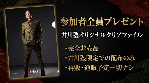 • 来場特典: 井川塾特製オリジナルクリアファイル(全員プレゼント)