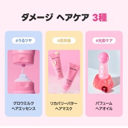 ダメージヘアケア3種: 「グロウミルクヘアエッセンス(うるツヤ)」、「リカバリーバターヘアマスク(高栄養)」、そして新作オイルの3ステップで、冬のダメージをトータルケアします。