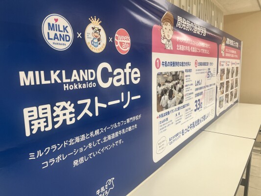 札幌スイーツ&カフェ専門学校は2026年1月21日(水)~1月25日(日)、北海道牛乳普及協会・ホクレン農業協同組合連合会が主催する「ミルク&ナチュラルチーズフェア2026」札幌会場において、札幌スイーツ&カフェ専門学校の学生がイベントに向けて開発したオリジナルドリンクを「MILK LAND Hokkaido CAFÉ」で販売しました。