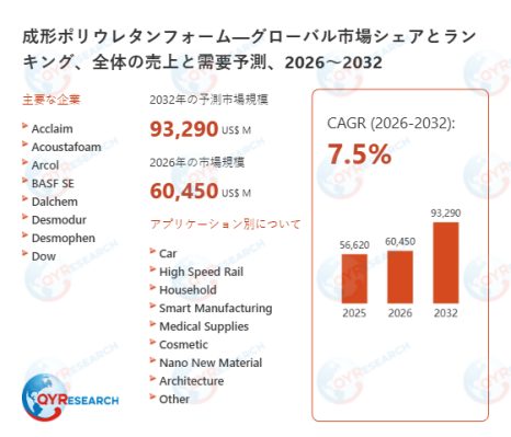 QY Research株式会社(東京都中央区)は、「成形ポリウレタンフォーム―グローバル市場シェアとランキング、全体の売上と需要予測、2026~2032」の最新レポートを発表しました。