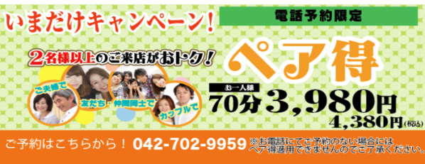もみの匠 相模大野店 ペア得 ー二人以上の来店でお得ー