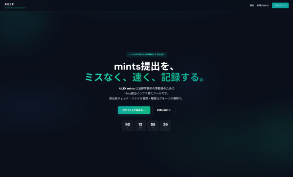 AILEX合同会社(本社:東京都渋谷区、代表:山川慎太郎)は、2026年5月21日の改正民事訴訟法全面施行に伴うmints(民事裁判書類電子提出システム)利用義務化に先駆け、法律事務所の事務員・補助者向けmints提出インフラ特化ツール「AILEX mints」のβ版を本日公開しました。