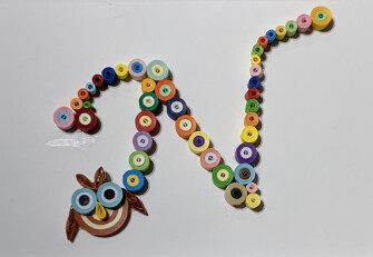 専用スティックに細長い紙をくるくる巻いてパーツを作り、それらを貼り付けて作品に仕上げる「ペーパークイリング」で、名前の頭文字をモチーフにしたクラフト作品を作ります。親子でのご参加も歓迎です。