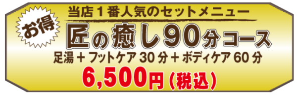 「匠の癒し90分コース」のご案内をしております