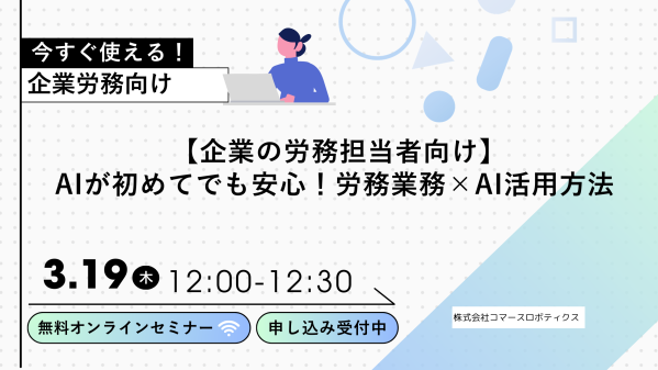 タイトル:【企業の労務担当者向け】AIが初めてでも安心!労務業務×AI活用方法 | 3/19(木)開催