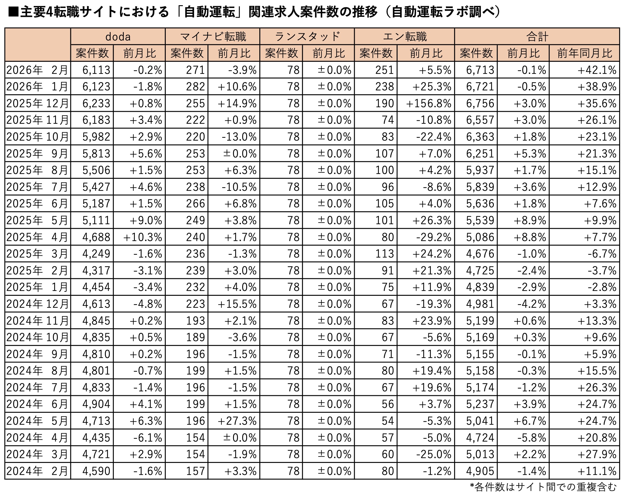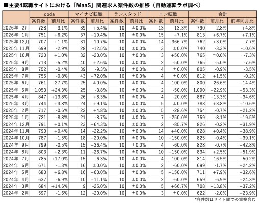 株式会社ストロボ(以下、当社/東京都港区 代表取締役 下山哲平)が運営する日本唯一の自動運転専門ニュースメディア『自動運転ラボ』(https://jidounten-lab.com)は、日本国内における自動運転・MaaS関連求人案件数の最新調査(2026年2月末時点)をまとめましたので、結果を発表いたします。