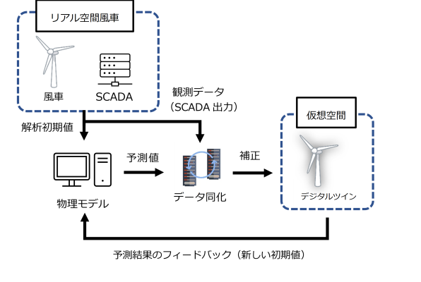 産学連携により,風車解析技術とデータ同化理論を融合し,高精度な風車デジタルツイン技術の確立を目指します。