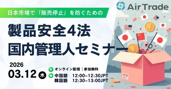 【3/12緊急追加開催】改正製品安全4法施行から3ヶ月。日本市場で「販売停止」を防ぐための海外EC事業者向け実務解説セミナー