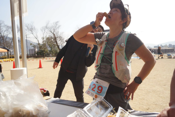寒さの残る2月下旬の開催でしたが、日中は気温が大きく上がり、半袖やノースリーブ姿で走る選手の姿も目立ちました。明日香野はエイドステーションで「冬のわらび大福」108パックを振る舞い、皆さまのエネルギー補給をお手伝いしました。とりわけ、初めてトレイルレースに参加された24kmの部の方々に大変喜んでいただけました。