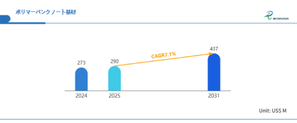 LP Information調査チームの最新レポートである「世界ポリマーバンクノート基材市場の成長予測2026~2032」(https://www.lpinformation.jp/reports/593717/polymer-banknote-substrates)によると、2026年から2032年の予測期間中のCAGRが7.1%で、2032年までにグローバルポリマーバンクノート基材市場規模は4.37億米ドルに達すると予測されている。ここに表れる特徴は、短期は既存紙幣の更新サイクルに沿って緩やかに進みつつ、中期以降は採用国の拡大と高付加価値化で成長率が跳ね上がる二段階構造である。ポリマー化の投資判断は、単年度の調達費よりも、流通寿命の延伸、偽造損失の抑制、券種統廃合や発行回数の平準化といった運用経済性で決まる。したがって市場の成長は、紙からポリマーへの単純置換ではなく、セキュリティ設計と耐久性を軸に、中央銀行の通貨運用を再構成するプロジェクトとして進行する。