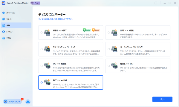 2.データ損失なしのFAT32→exFAT変換