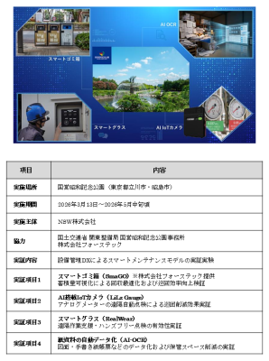 本実証実験では、設備点検業務の省人化・効率化にとどまらず、紙帳票のAIデジタル化やIoT活用による園内オペレーションの高度化、遠隔支援による専門技術者の最適配置を推進します。