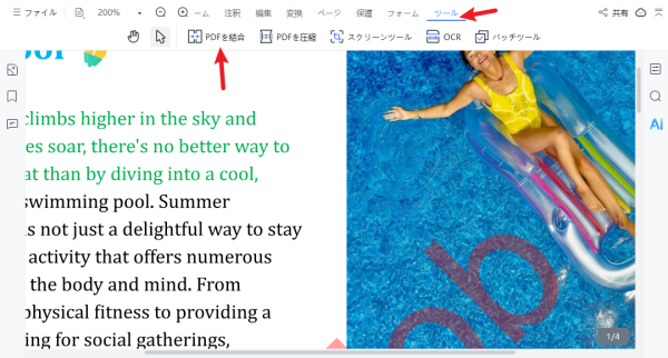 1.「PDFを結合」機能を選択します。